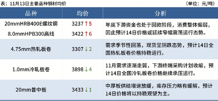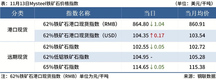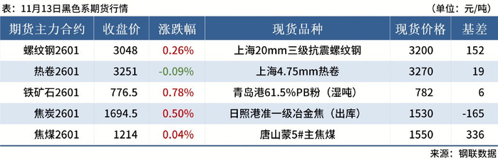 ◎ 11月13日,全国主港铁矿石成交105.00万吨,环比增6.3%;237家主流贸易商建筑钢材成交10.62万吨,环比增16%。