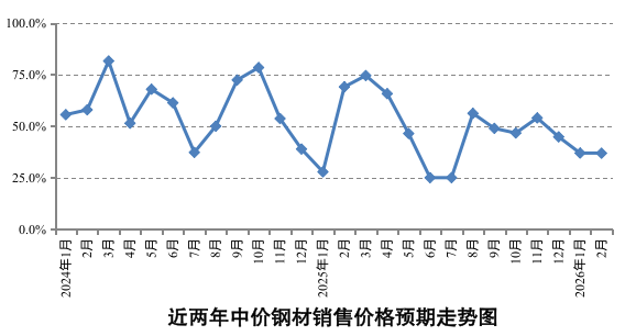 据对全国重要钢材批发市场调查,2月份钢材批发市场销售价格预期指数、购进价格预期指数分别为36.86%、45.18%,比上月分别下降0.08和上升3.74个百分点,继续低于50%分界线,反映出市场认为2月份钢材市场仍将保持弱势运行。